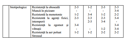 3 – aptitudinea sau trăsătura sunt solicitate pe toată durata zilei de muncă.