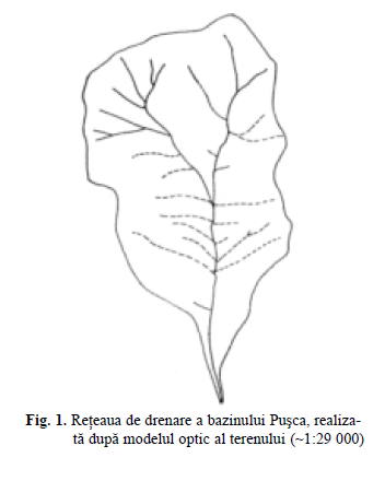 Trasarea elementelor specifice se poate face cu stereograful sau folosind o folie transparentă, aşezată pe una din fotogramele care formează modelul optic al terenului. Rezultă astfel o viziune de ansamblu mult mai completă, în special în ce priveşte delimitarea bazinelor mici şi a reţelei hidrografice de ordinul 1 după Strahler. În figura 1 se prezintă aspectul reţelei de drenare pentru bazinul Puşca, obţinută după imaginea stereoscopică a terenului.