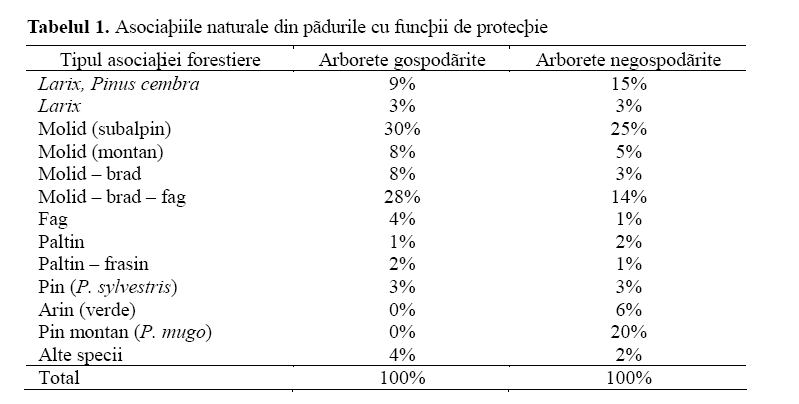 Unele din pădurile cu funcţii de protecţie în total 22 % sunt gospodărite (tabelul 1), între altele cu scopul de a le tocmi, deoarece nu toate corespund în mod satisfăcător cerinţelor.